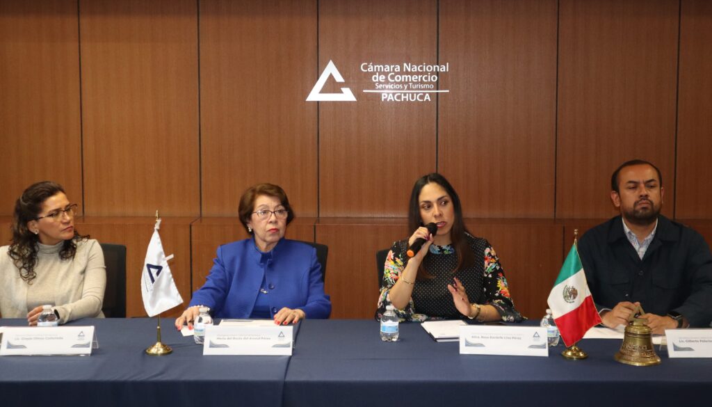 En un esfuerzo conjunto por impulsar el desarrollo económico de la capital hidalguense, la Cámara Nacional de Comercio, Servicios y Turismo de Pachuca reafirmó sus lazos de colaboración con el sector público. Durante un productivo encuentro de trabajo, el Comité Ejecutivo de esta cámara empresarial, encabezado por la presidenta Rocío del Arenal dialogaron abiertamente con la Secretaría de Desarrollo Económico de Pachuca, Mtra. Rosa Danielle Lina Pérez.
